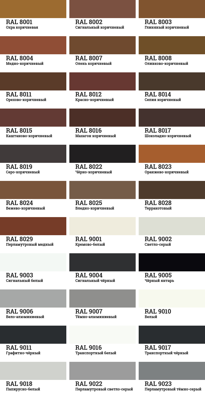 Порошковая полимерная окраска. Выбор цвета по каталогу RAL